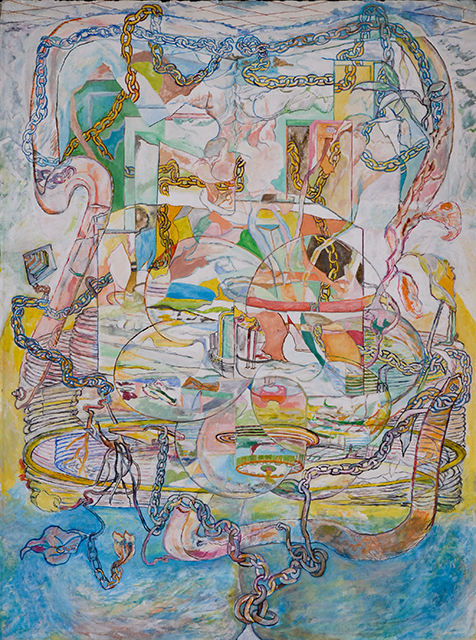 In collaboration with New York based artist Larry Rushing, this dress was made using fine art painting, digital printing, fashion draping, and sewing by hand and machine. Reams’ work is inspired by color, the female body form and Rushing’s paintings. Rushing’s paintings are inspired by his belief that femininity as the center of creativity and the improvisational rhythm of jazz, utilizing his anima to express an exquisite sense of color.